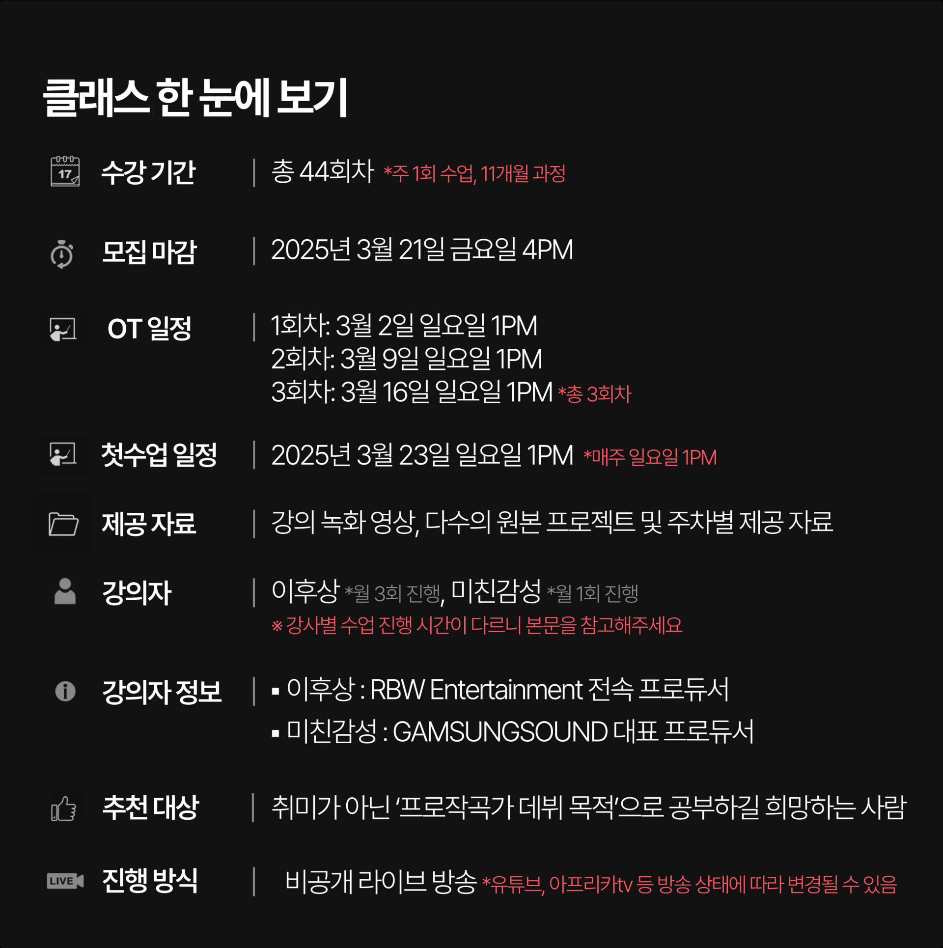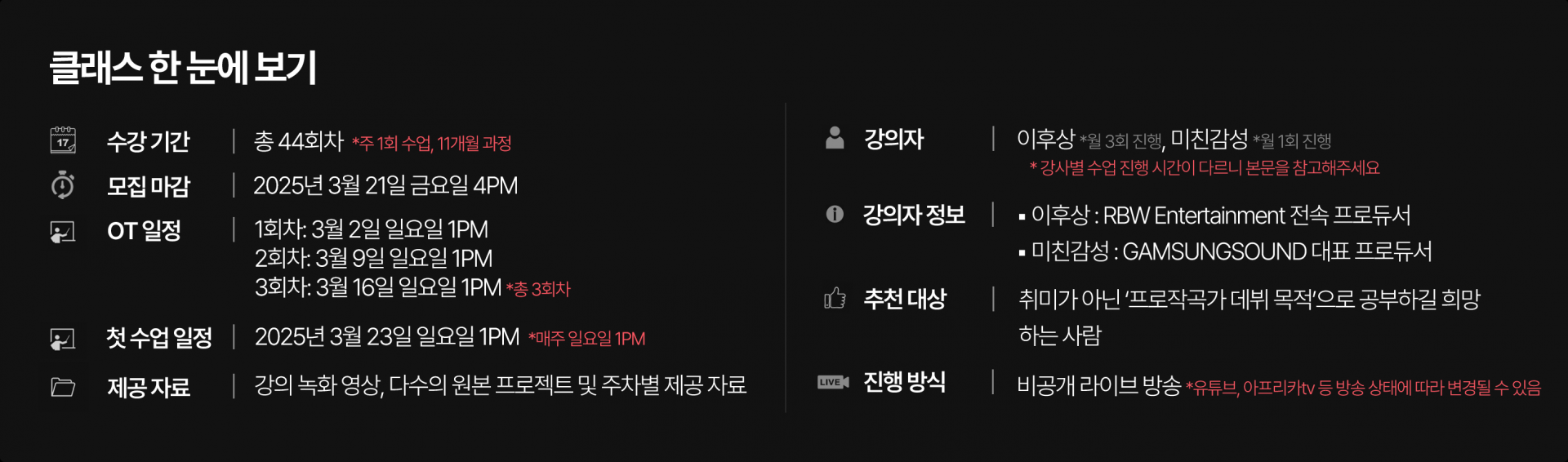 본수업 시작일 : 2025년 3월 23일 (일) 1PM (총 44회차)
