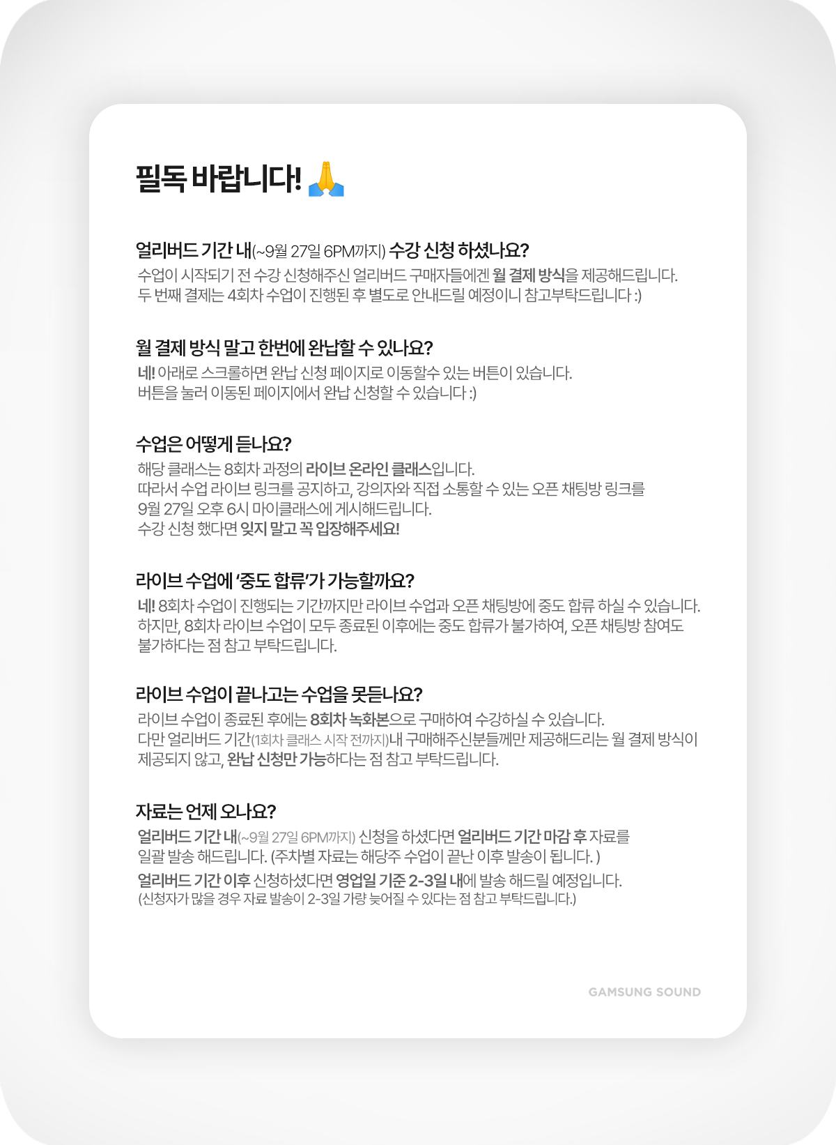 월 결제 방식이 아닌 완납 결제를 희망하실 경우